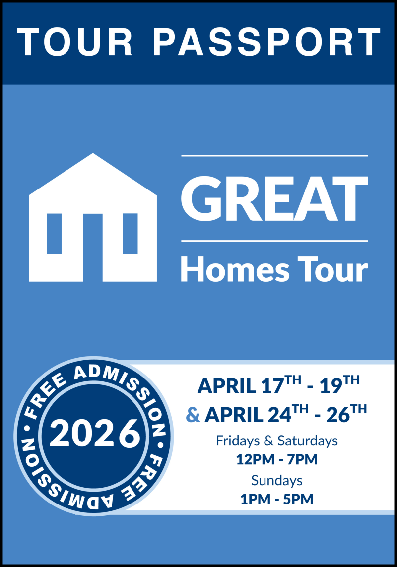 Don’t Forget to Grab a Tour PassportYour Great Homes Tour Passport is your official guide to the event. Available at every showcase home, this handy booklet is filled with everything you need to make the most of your tour, including home details, community highlights, giveaway information, and the full event schedule.