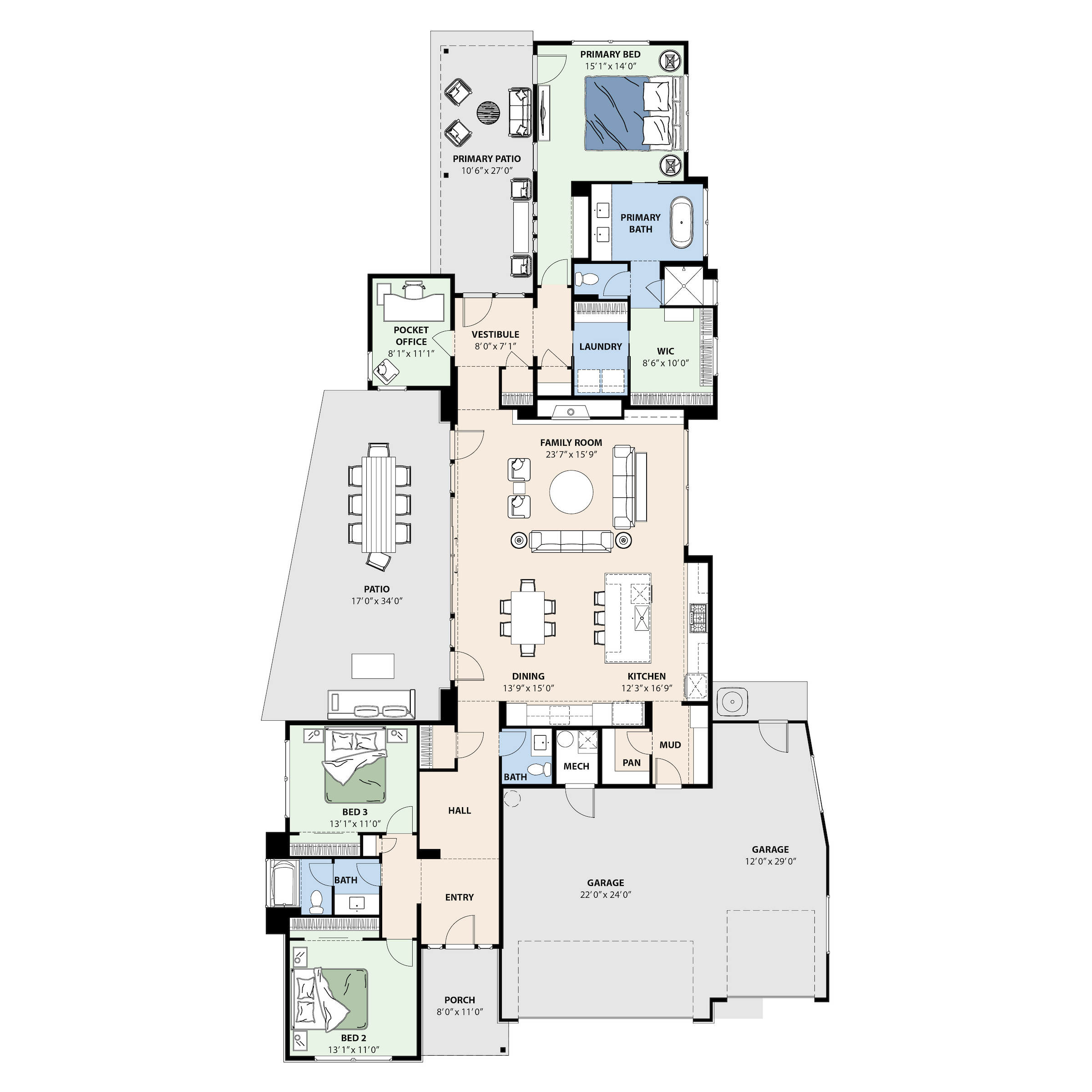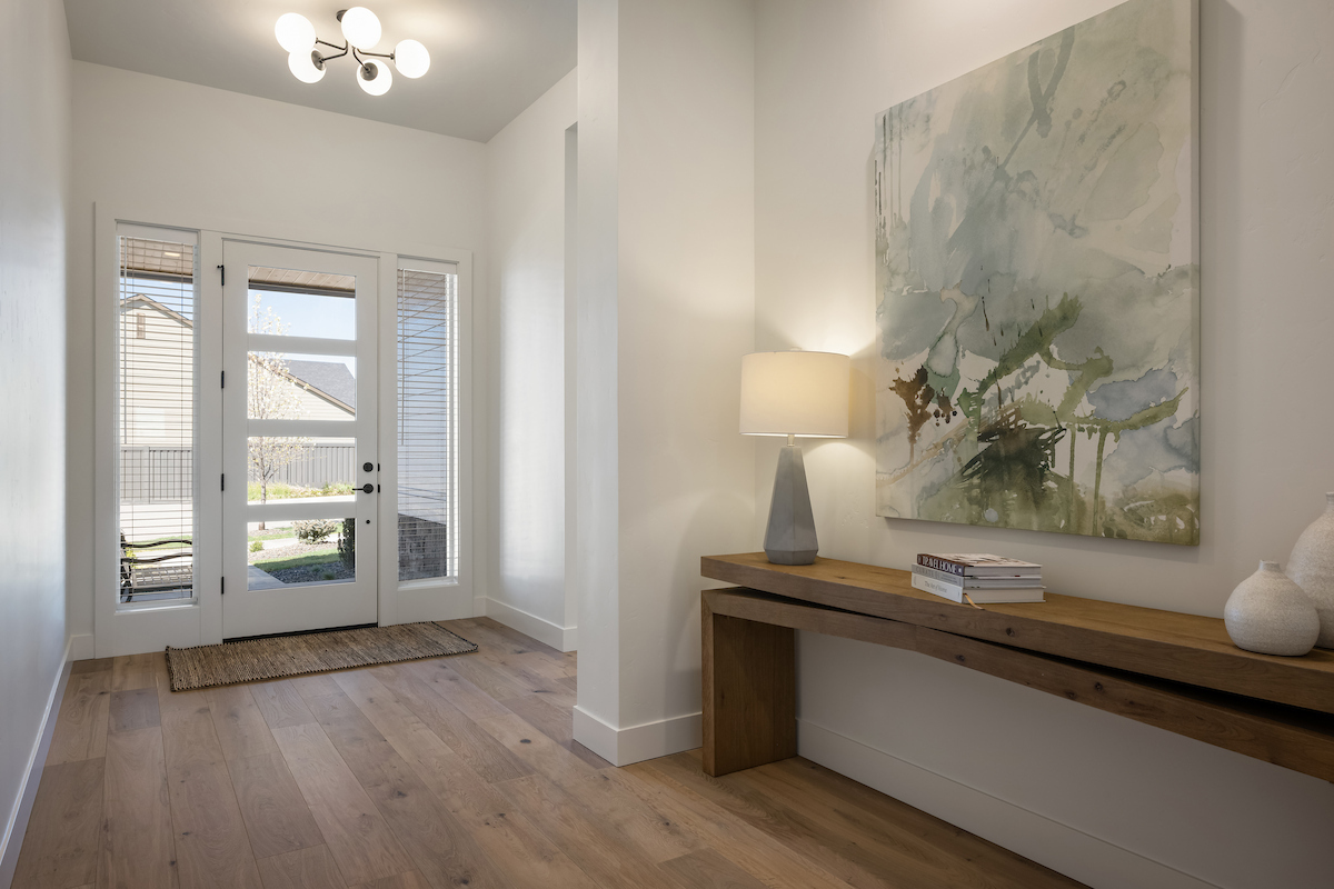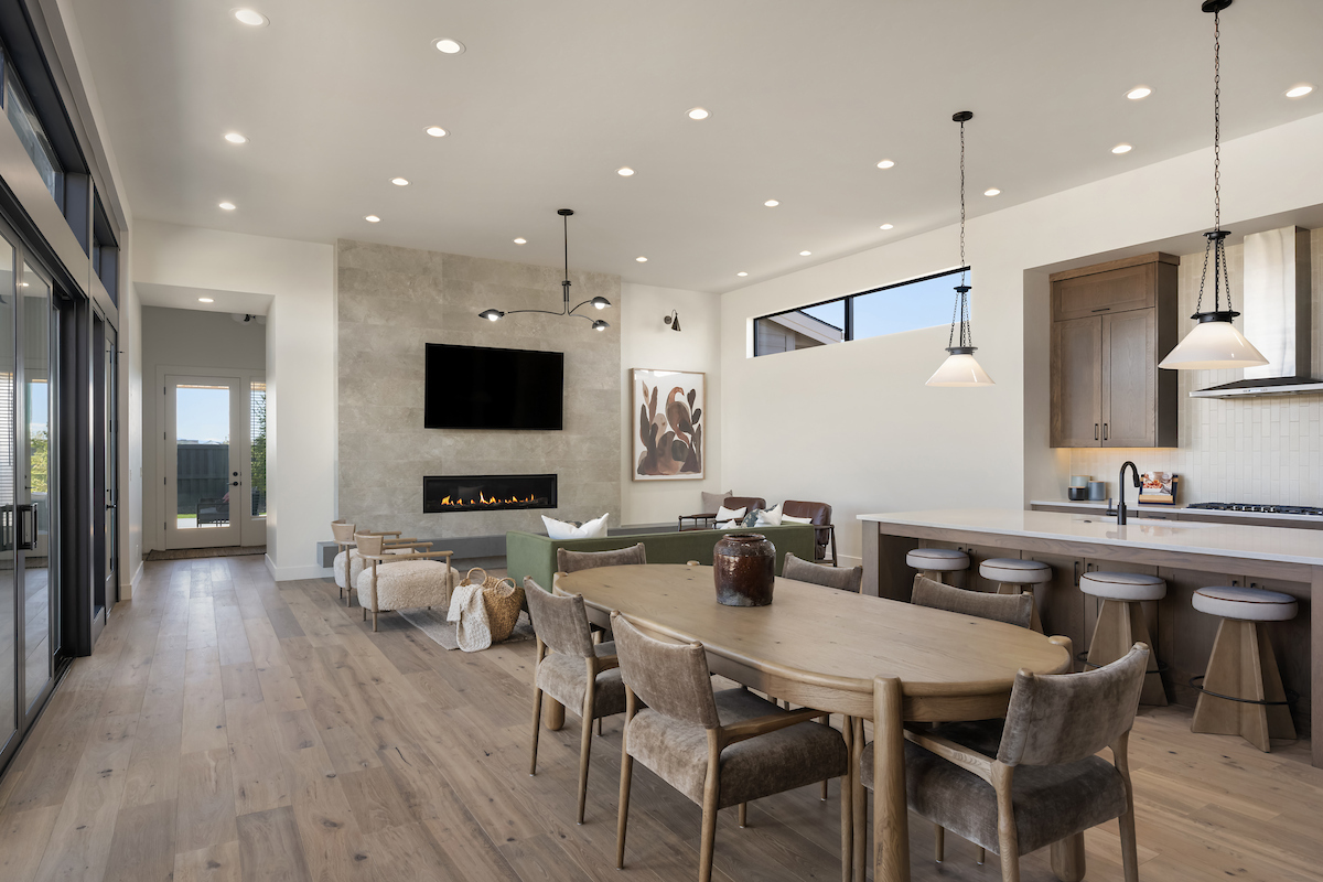 The Monroe is a beautifully balanced single level home designed for easy living. An open kitchen, dining, and family room create a welcoming space for gathering, with seamless access to the covered patio for indoor outdoor entertaining.