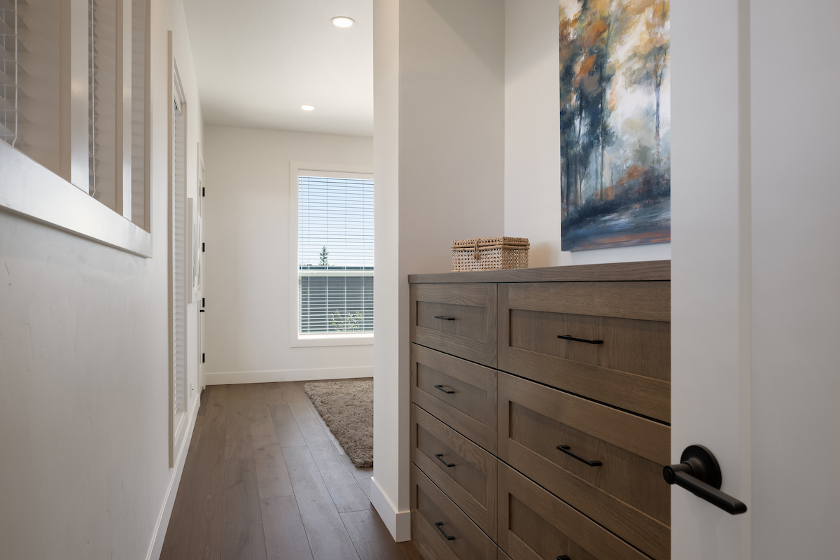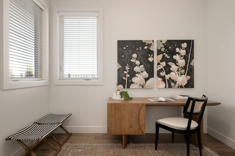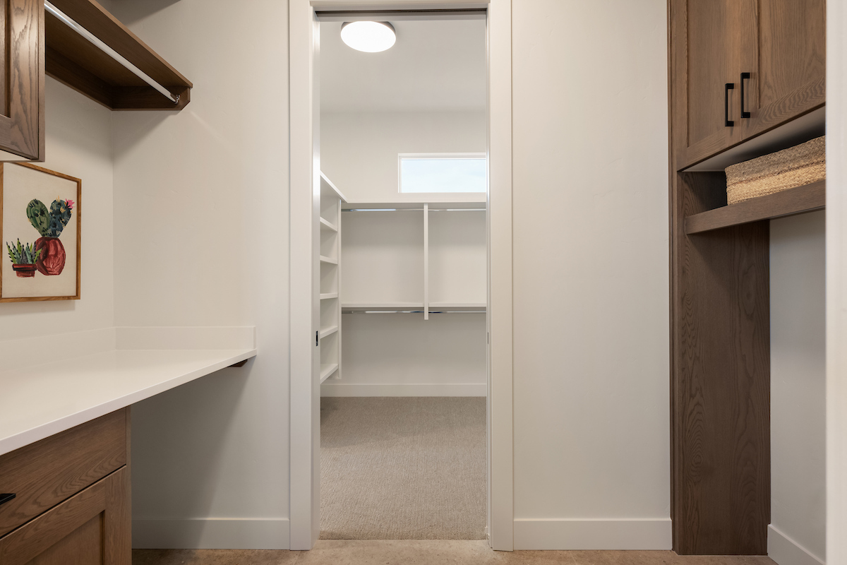The private primary suite features a spa inspired bath, walk in closet, and convenient access to the laundry room. Two additional bedrooms, a pocket office, mudroom, and spacious garage complete this smart and functional layout.