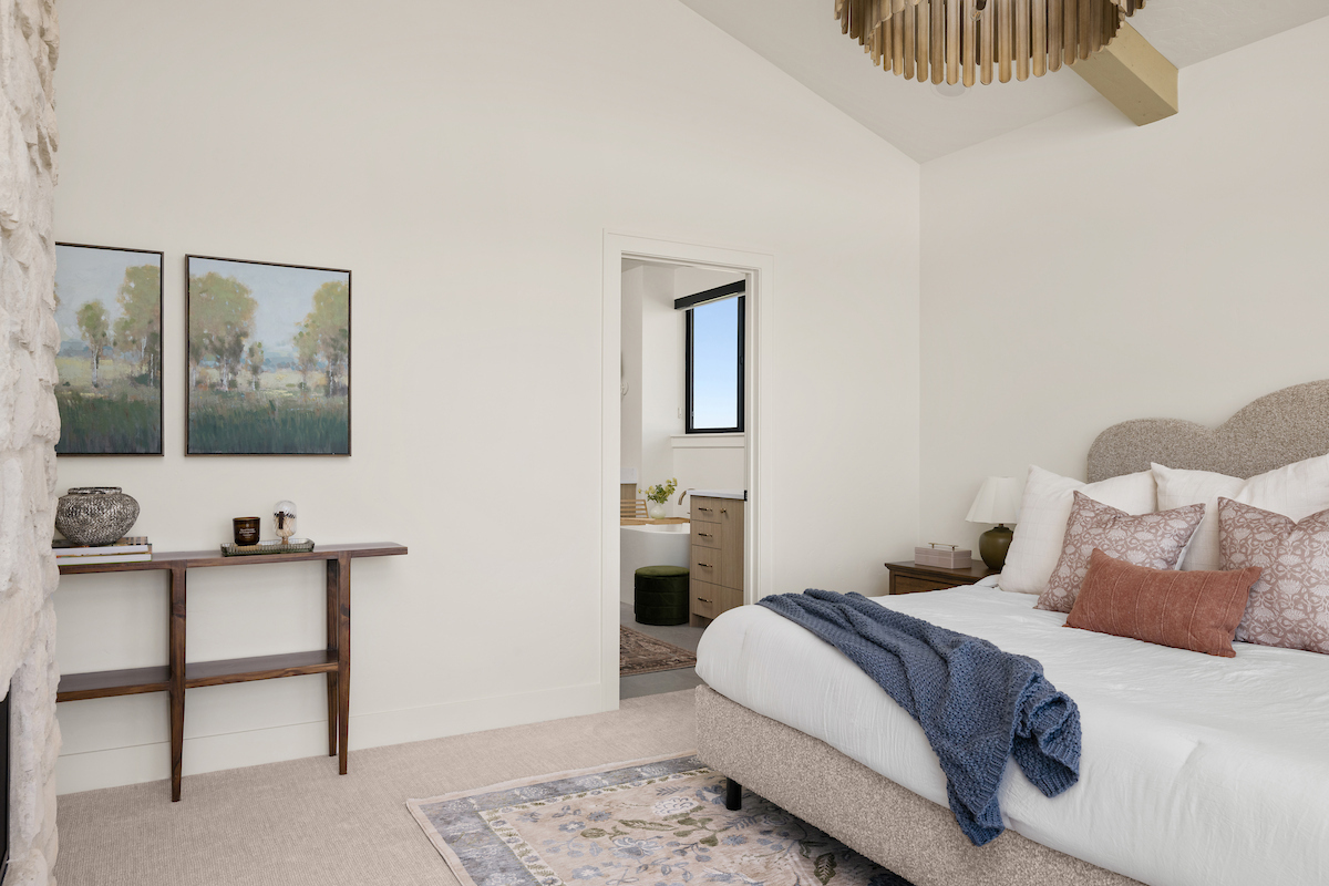 The Bell is a spacious two story home designed for connection and comfort. The main level features an open kitchen with a large island that flows into the dining area and family room, with access to a covered patio for easy indoor outdoor living. A private bedroom and full bath on the main floor offer flexibility for guests or multi generational living.